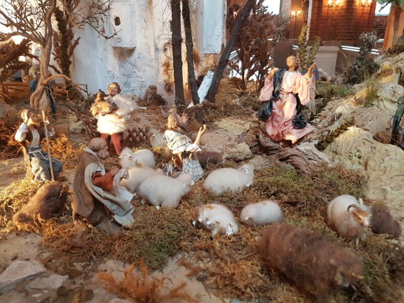 Julelegenden fortæller juleevangeliet med små figurer og landskaber, og modelleret helt ned til mindste detalje. F.eks. brød på bakker, æsel med oppakning og flotte huse.