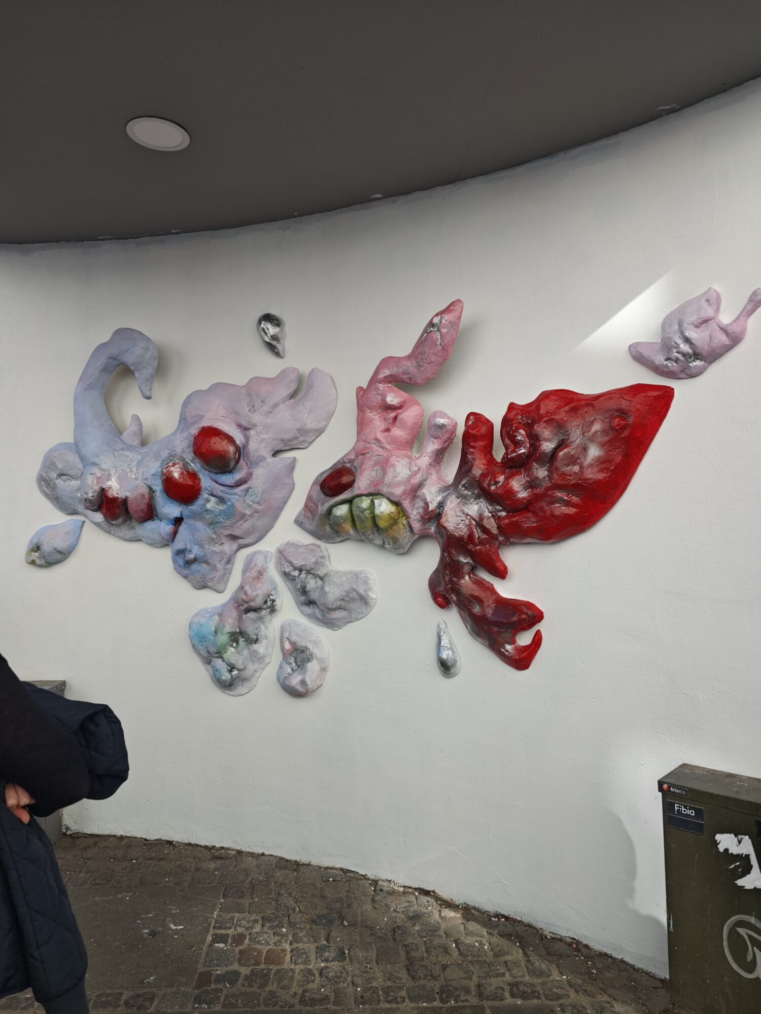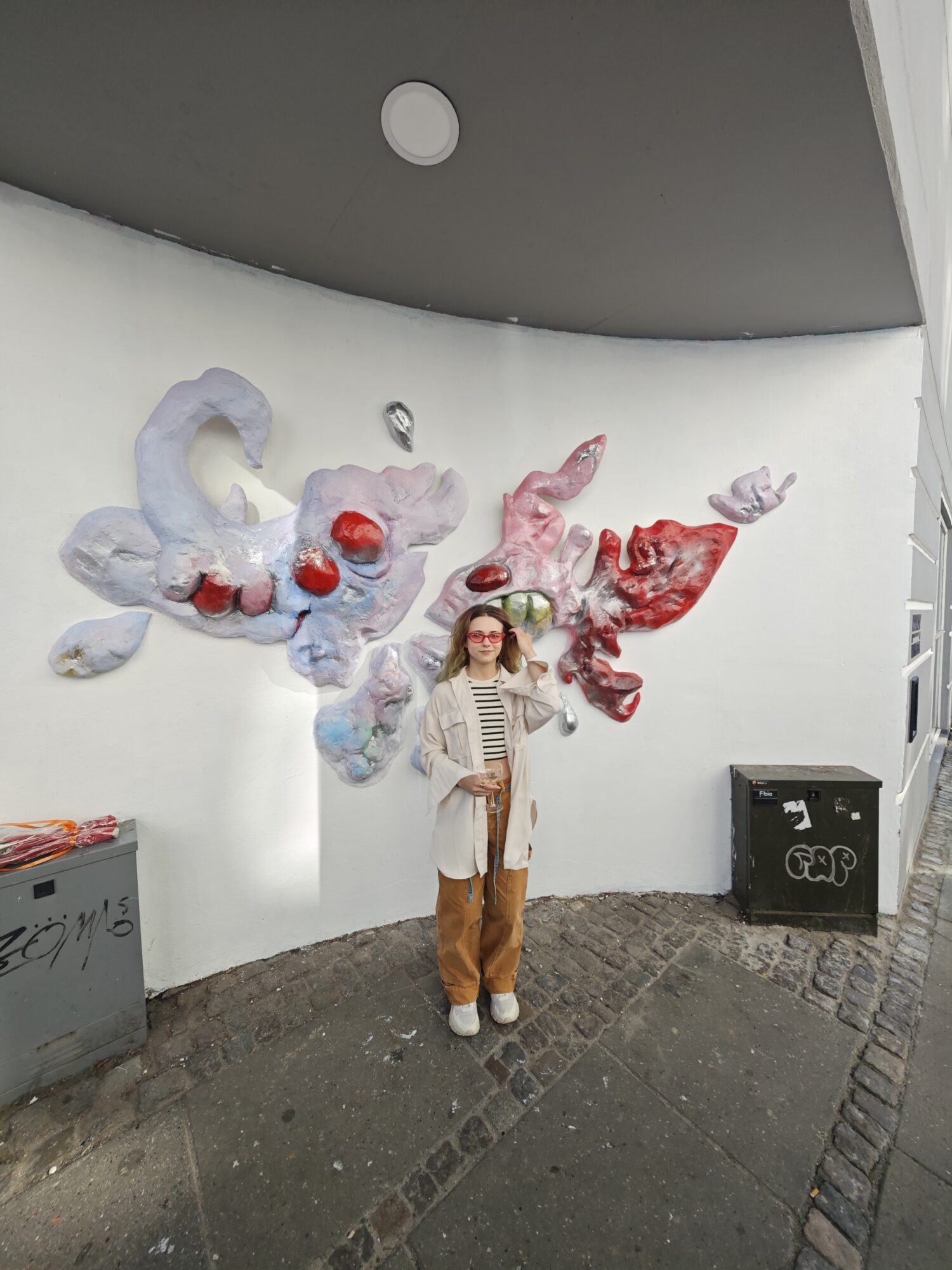 ”Gennem farverige, halvorganiske reliefformer, der bryder frem fra og forsvinder ind i væggen, inviterer jeg beskueren ind i et grænseland: et sted, hvor det smukke og det grimme eksisterer i symbiotisk balance, og hvor det evige går hånd i hånd med det flygtige,” beskriver kunstneren det.