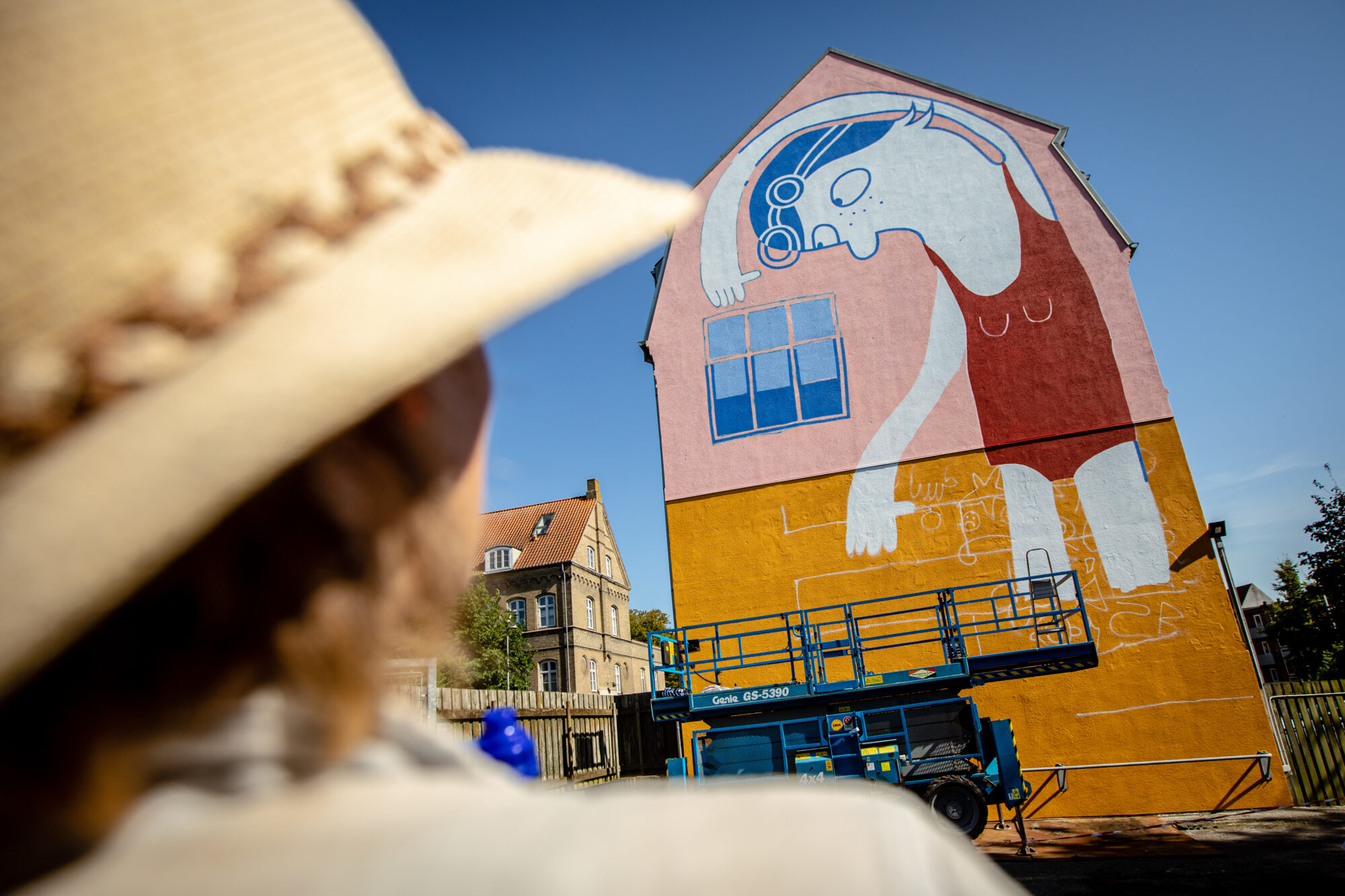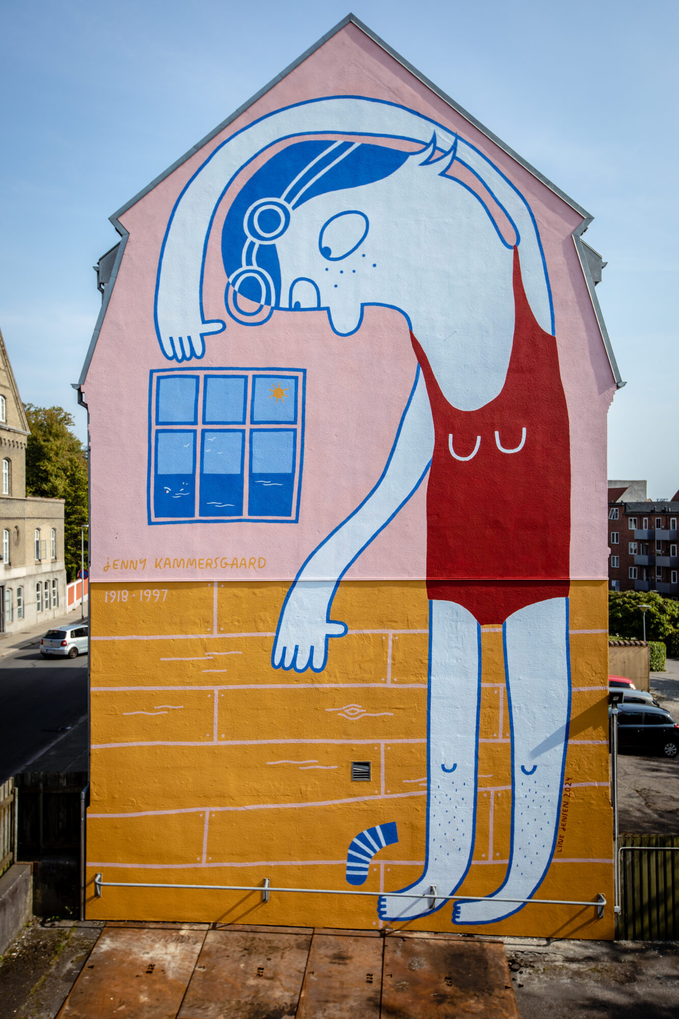 Motivet på den store gavl i Kildegade giver plads til en historisk horsensiansk kvinde – nemlig Jenny Kammersgaard, der var én af Danmarks første store sportsstjerner.